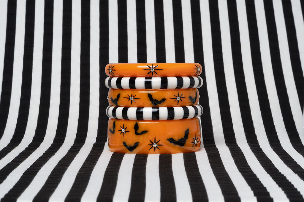A statement piece for Halloween, our Bat Brooch will add a touch of spooky charm to your outfit. Made of silver-plated brass with enamel inlay.