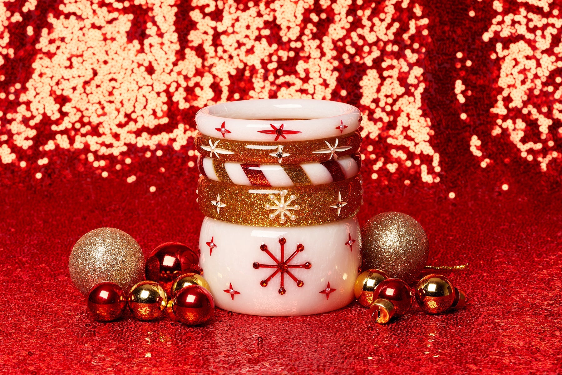 Stack with the other Christmas bangles and finish off with the matching earrings and brooch.