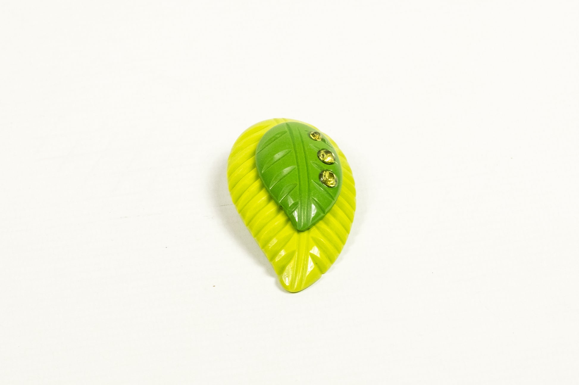 Green Carved Leaf Brooch