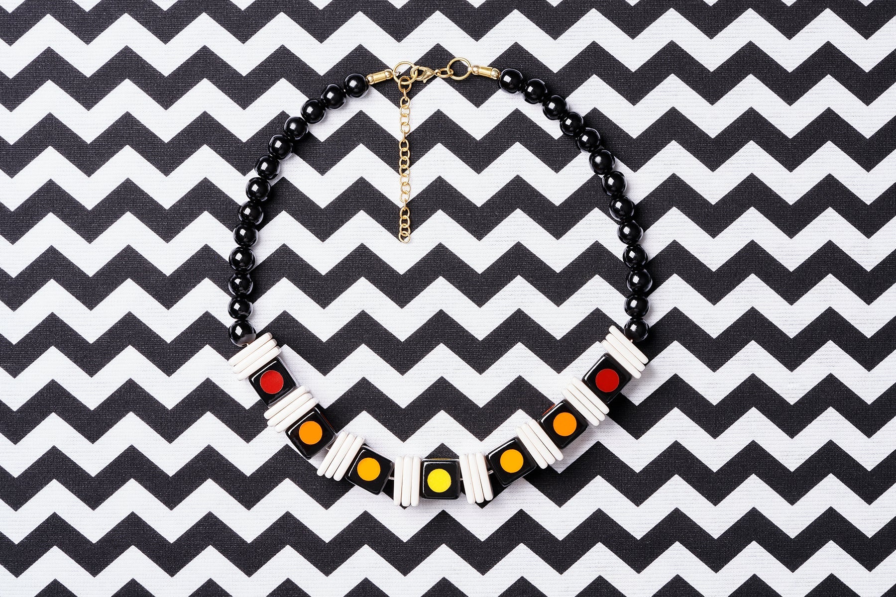 This striped bangle is designed to go with both colourways and provide a graphic spacer for your stack. Team with the other items from the range for a striking look.