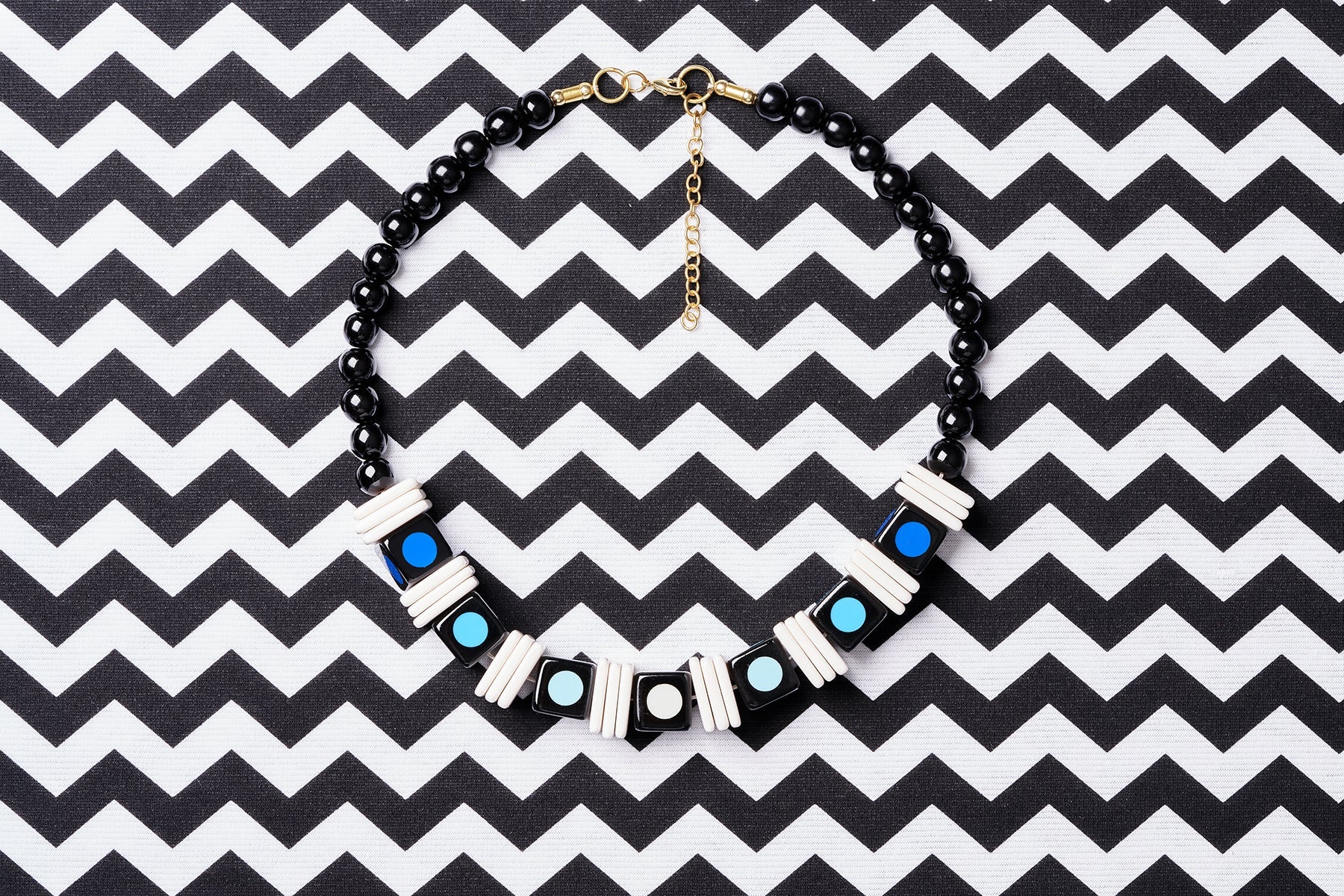 There are two colourways, this necklace is from the warm colourway and also has a cool toned partner. Team with the other items from the range for a striking look.