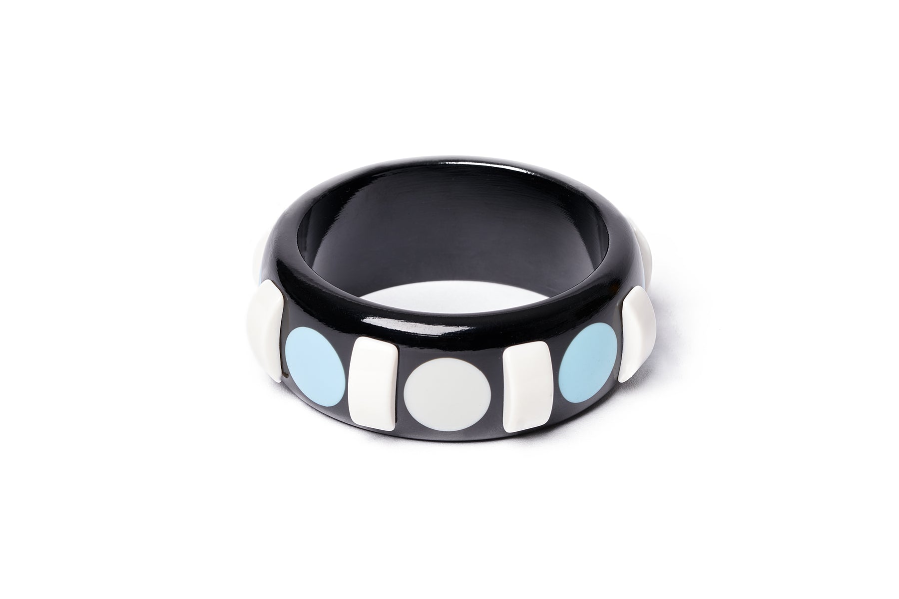There are two colourways, this bangle is from the cool colourway and also has a warm toned pal. Team with the other items from the range for a striking look.