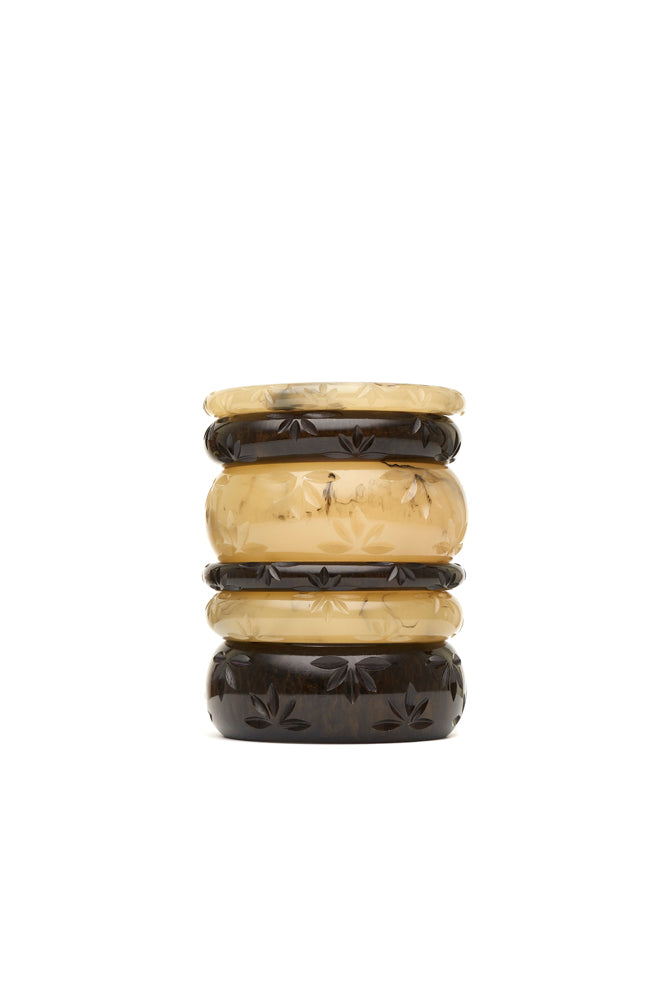 Autumnal colours are always my favourite at this time of year. I've designed this range to not only reflect the beautiful colours in nature at this time but each colour also has its own complementary creme coloured bangle that looks so much like true Bakelite. They make perfect stacking partners!