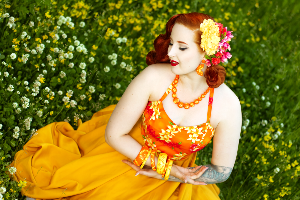 Picture the scene. You're having your breakfast in your villa, you're dressed in your finest vintage lounge-wear, you're sipping the freshest orange juice. On your wrist is a stack of Duotone Sunrise fakelite bangles with their vibrant yellow and orange carving.