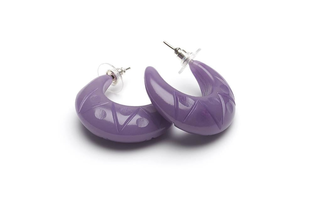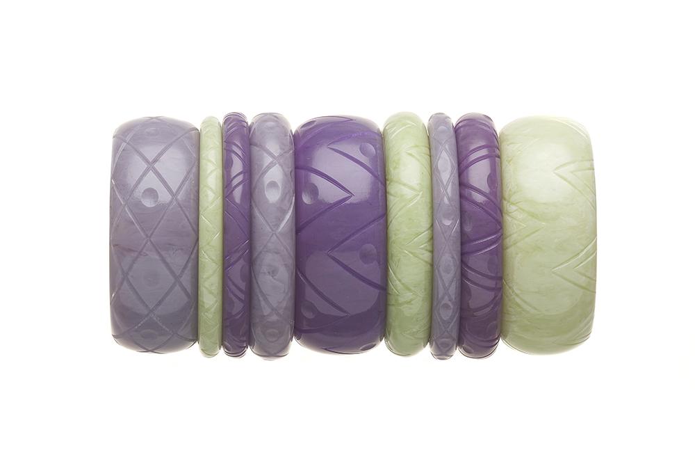 Beautiful amethyst purple fakelite jewellery in a carved 1940s bakelite style. This season was inspired by the colours of Spring, with some more serious low-lights to give a calm feel to the range.